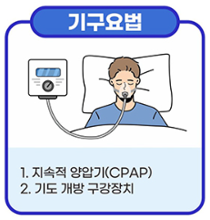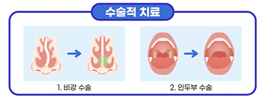 ▶기도 확장 수술: 목젖 제거, 코막힘 개선 등 기도를 물리적으로 확장하는 수술.