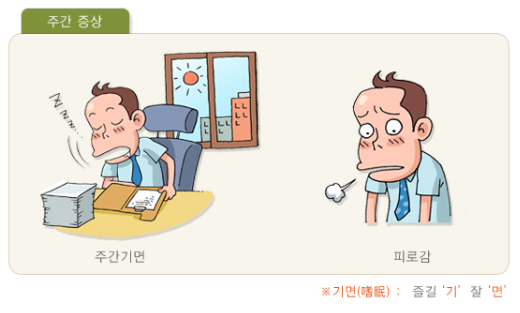 ▶주간 졸림증: 충분히 잤음에도 불구하고 낮 동안 졸음을 느끼는 경우.