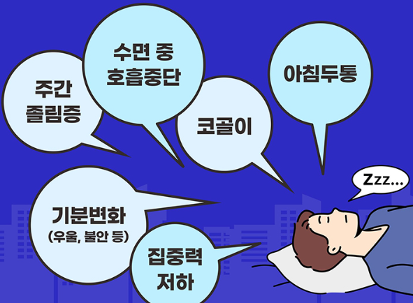 아래에서는 수면무호흡증의 증상, 자가진단 방법, 치료법에 대해 구체적으로 알아보겠습니다.