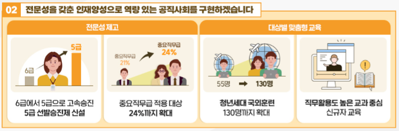 이러한 정책들은 공무원의 근무 환경 개선과 사기 진작에 긍정적인 영향을 미칠 것으로 예상됩니다.