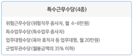 ▶위험근무수당: 위험한 업무를 수행하는 공무원에게 지급되는 수당입니다.