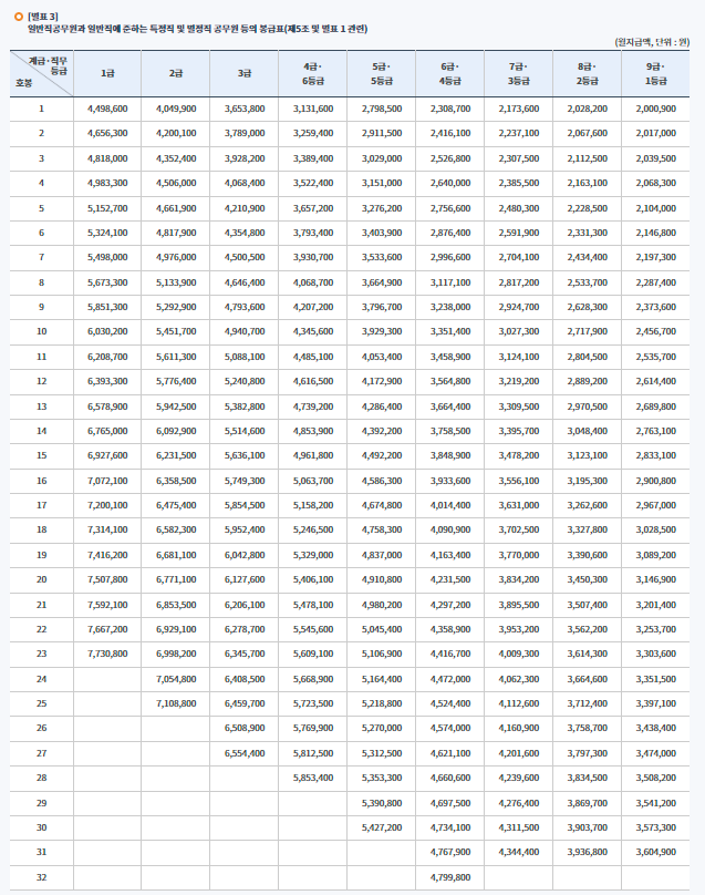 2025년 더 자세한 직종별 공무원 봉급표는 아래 인사혁신처 홈페이지에서 확인 하실 수 있습니다.