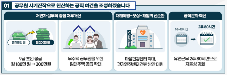 이러한 정책들은 공무원의 근무 환경 개선과 사기 진작에 긍정적인 영향을 미칠 것으로 예상됩니다.
