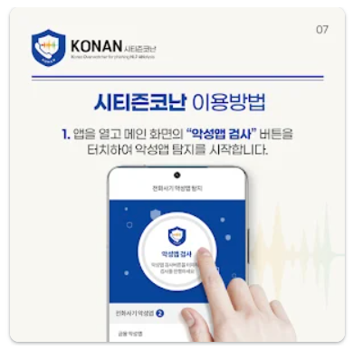 시티즌코난은 경찰청이 운영하는 모바일 보안 앱으로, 보이스피싱을 유발하는 악성 앱을 탐지하고 삭제할 수 있도록 도와줍니다.