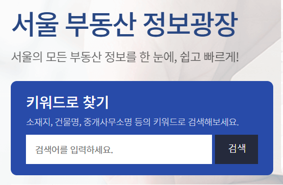 아래 서울시 부동산 정보광장 홈페이지에서도 토지거래 허가구역 및 실거래가 정보와 부동산 정책자료를 확인할 수 있습니다.