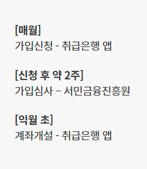 가입 심사가 완료되면 익월 초에 계좌 개설이 진행됩니다. 계좌 개설 또한 취급은행의 앱을 통해 완료할 수 있으며, 이후 매월 저축을 시작할 수 있습니다.
