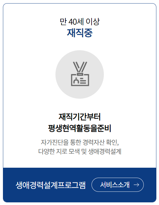 - 주요 내용: 전직에 대한 자신감 증진, 진로 탐색, 이·전직 지원
