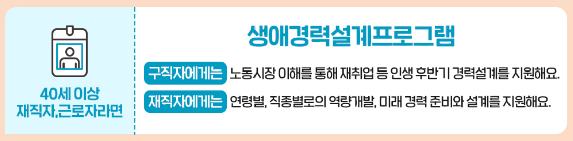 - 주요 내용: 구직 기술 습득, 재취업 지원, 취업 정보 제공