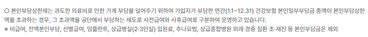 본인부담 상한제는 예기치 않은 의료비 부담을 줄여주는 제도로, 특히 고액 진료를 받은 경우 큰 도움이 됩니다.