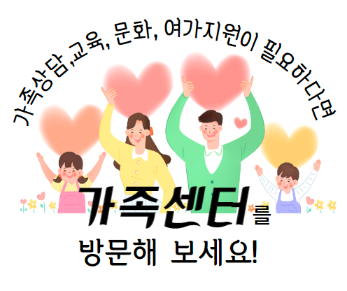 가족센터는 다양한 가족 문제에 대한 고민을 함께 나누고 해결할 수 있는 공간입니다.