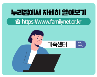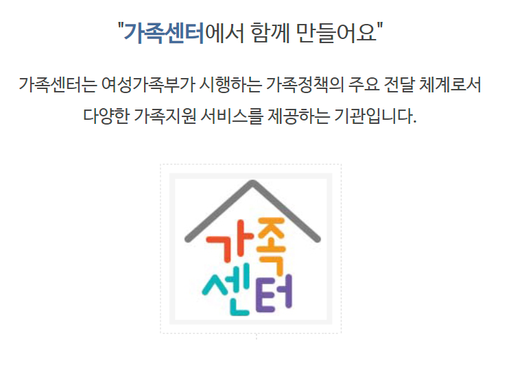 가족센터는 다양한 가족 형태에 맞는 서비스로 가족의 고민을 함께 해결하고, 가족 구성원이 더 나은 관계를 맺을 수 있도록 돕는 기관입니다.