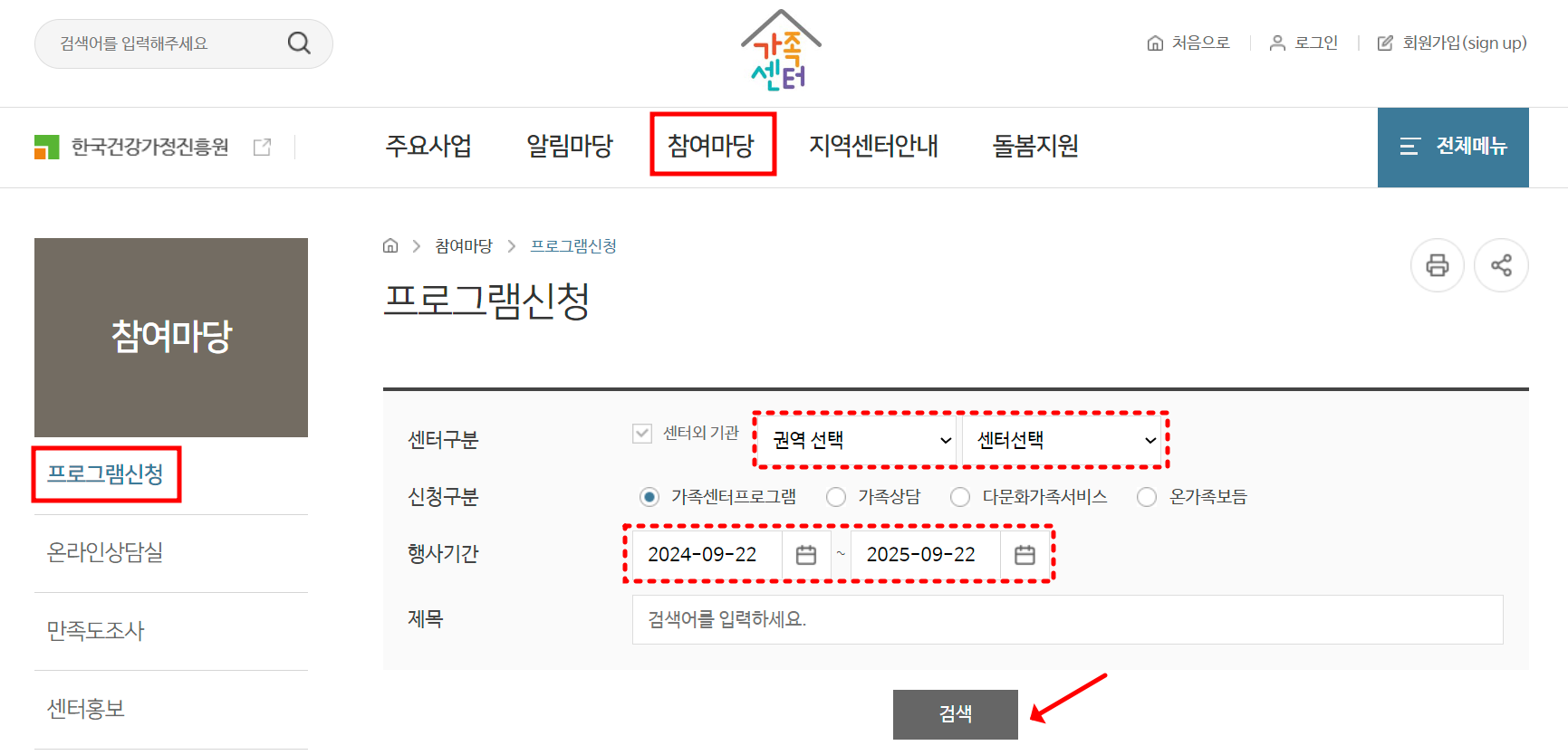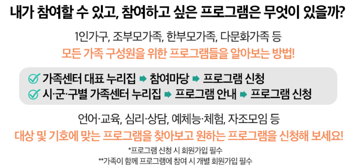 * 가족센터 대표 누리집: 참여마당 → 프로그램 신청