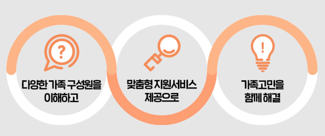 가족 상담, 부모 교육, 자녀 양육 교육, 그리고 가족 전체가 함께 즐길 수 있는 문화 활동을 포함해 가족의 행복을 돕는 서비스가 다채롭게 마련되어 있습니다.