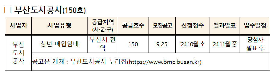 부산주택도시공사 등 다른 기관에서 모집하는 주택(291호)은 해당 기관의 누리집을 통해 신청 가능합니다.