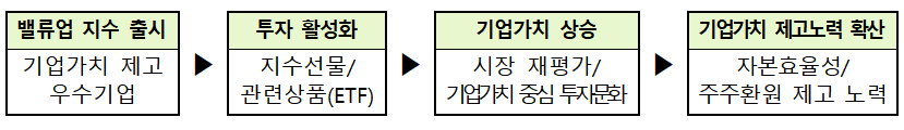 투자 유치: 밸류업 지수를 기반으로 한 ETF 등 다양한 금융 상품 출시를 통해 투자를 유치하고, 자금 흐름을 개선합니다.