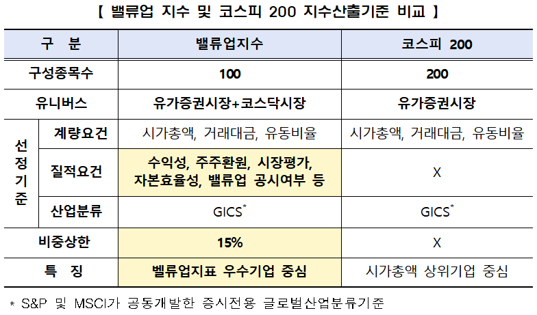 밸류업 지수와 코스피200의 차이점