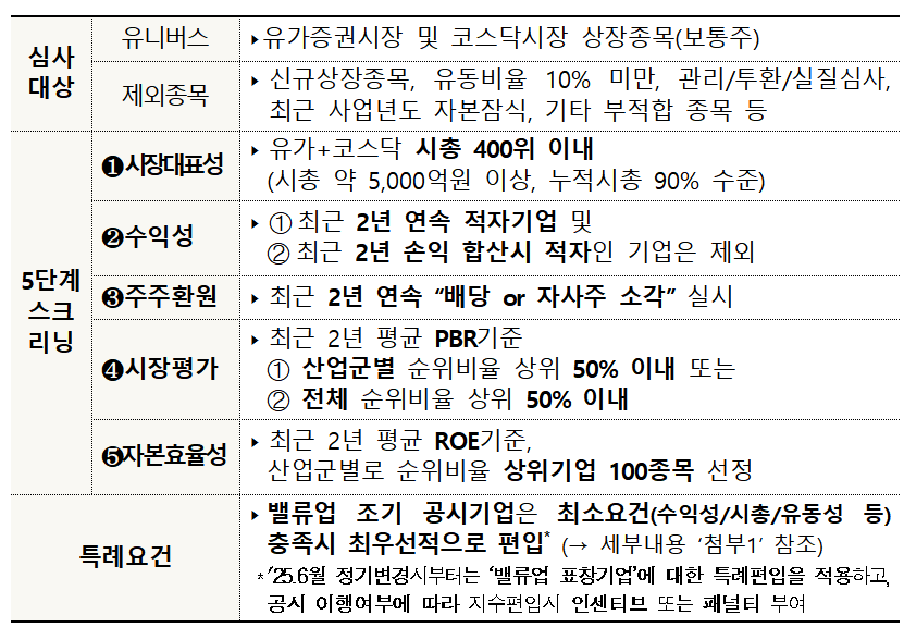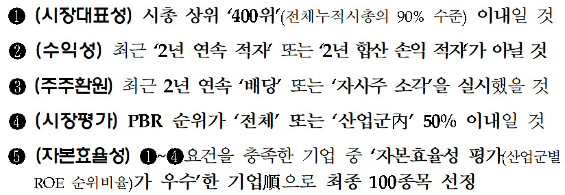 밸류업 지수 종목 선정방식