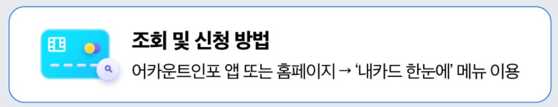이렇게 어카운트 인포를 활용하면 복잡했던 카드 관리 절차를 손쉽게 해결할 수 있고, 실시간으로 처리 결과를 확인할 수 있어 더육 효율적인 금융생활을 누릴 수 있습니다.