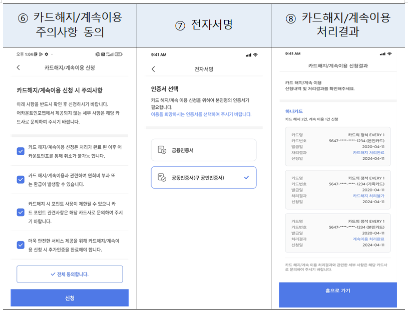 또한 해지 요청이 실시간으로 처리되며, 별도의 카드사 방문이나 고객센터 통화 없이 간편하게 처리가 완료됩니다.