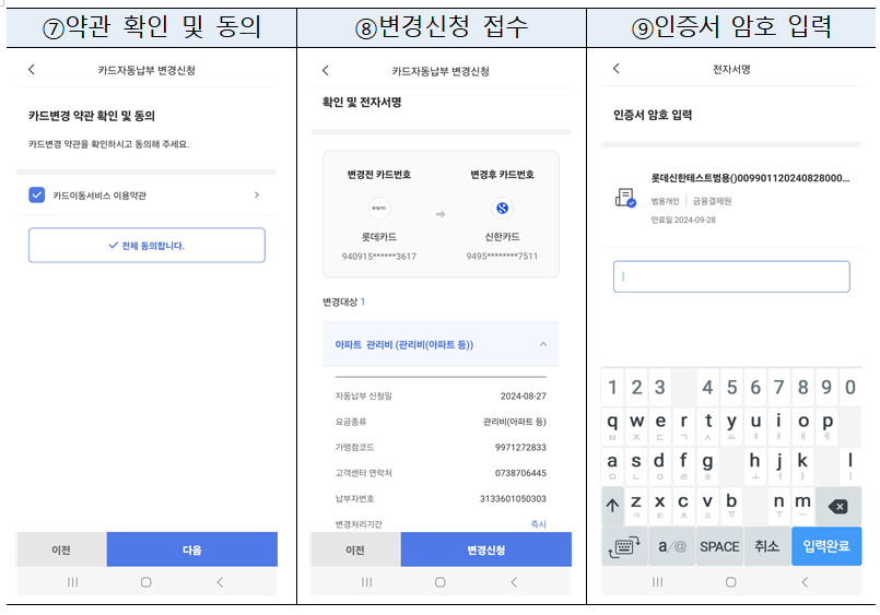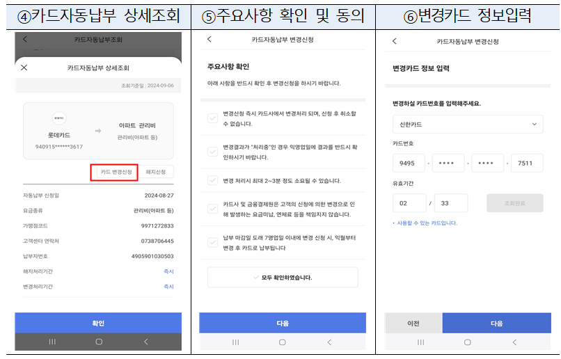 3) 자동납부 카드 변경 또는 해지