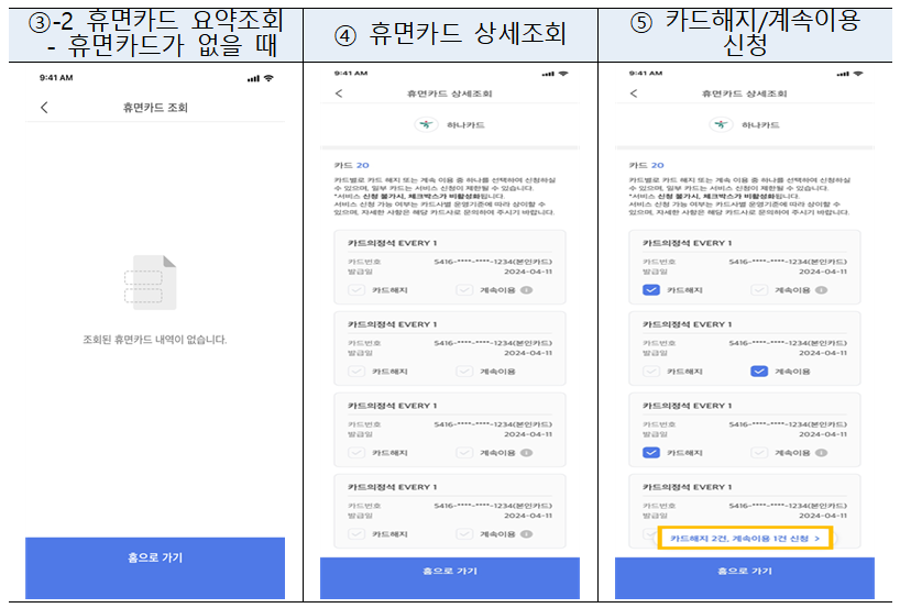 이 기능은 소비자가 휴면카드를 인지하지 못해 발생할 수 있는 여러 위험을 줄여주는 동시에, 불필요한 카드를 간편하게 관리할 수 있게 해줍니다.