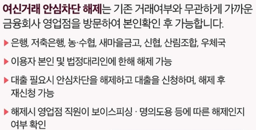여신거래안심차단서비스 해제방법