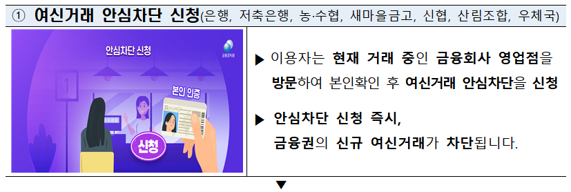 나와 내 가족의 안전한 금융생활을 위해 지금 바로 가까운 금융회사에 방문해 여신거래 안심차단 서비스를 신청하세요!