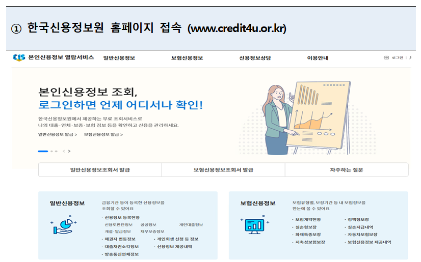 - 한국신용정보원 홈페이지 접속