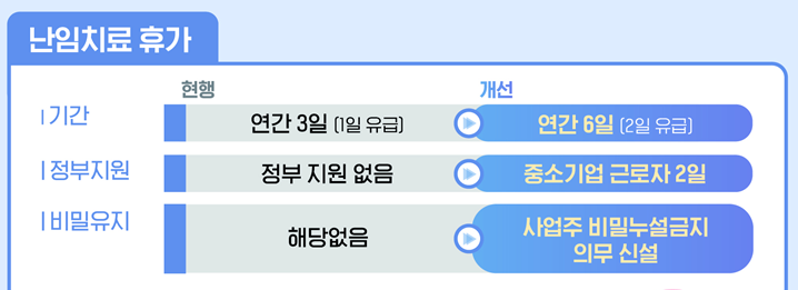 난임치료휴가에 대한 혜택도 확대되었습니다.