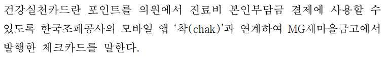 관리형의 경우 포인트를 한국조폐공사 앱 (chak)에서  건강실천카드를  신청하여 전국의원( 한의원, 치과의원, 보건소 제외)에서 진료비 부인부담금 결제에 사용할 수 있습니다.