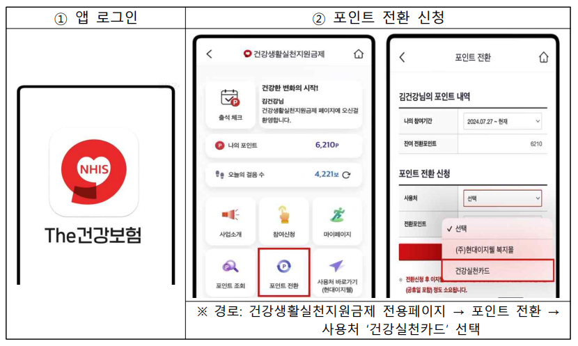단, 적립포인트를 건강실천카드로 사용하기 위해서는 건보 공식 앱에서 포인트 전환이 필요합니다.