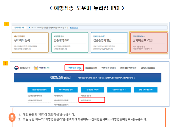 이번 절기부터는 접종 대상자의 편의를 위해 전자예진표가 도입되었습니다.