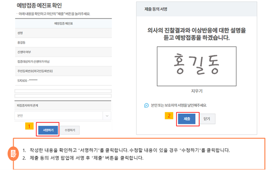 단, 예진표는 접종 당일에 작성해야 효력이 발생하며, 인플루엔자와 코로나19 백신을 동시에 접종할 경우 각각의 예진표를 작성해야 합니다.