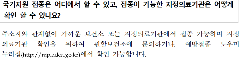 지정의료기관 목록은 예방접종도우미 누리집을 통해 확인할 수 있습니다.