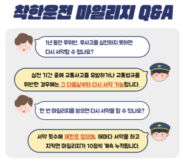 ▶안전운전 문화 확산: 착한운전 마일리지는 단순히 혜택을 받는 것뿐만 아니라, 안전운전의 중요성을 일깨우고 교통사고 예방에 기여하는 제도입니다.