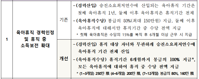 또한 육아휴직 기간 동안 지급되는 육아휴직수당이 전액 지급으로 확대됩니다.