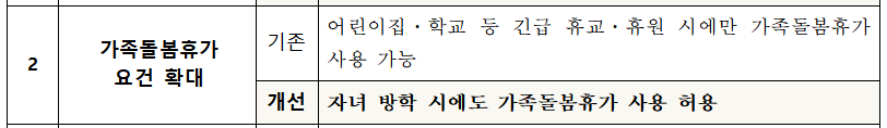 가족돌봄휴가 요건 완화