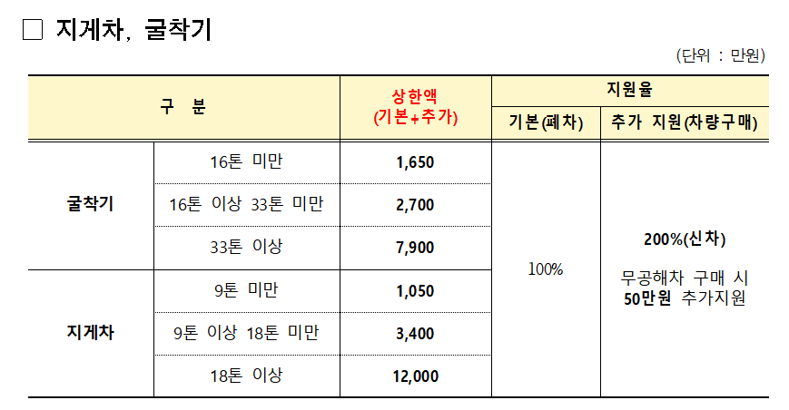 건설기계 역시 대형 차량으로서 미세먼지와 대기오염에 미치는 영향이 크기 때문에 조기 폐차 지원 대상에 포함되었습니다.