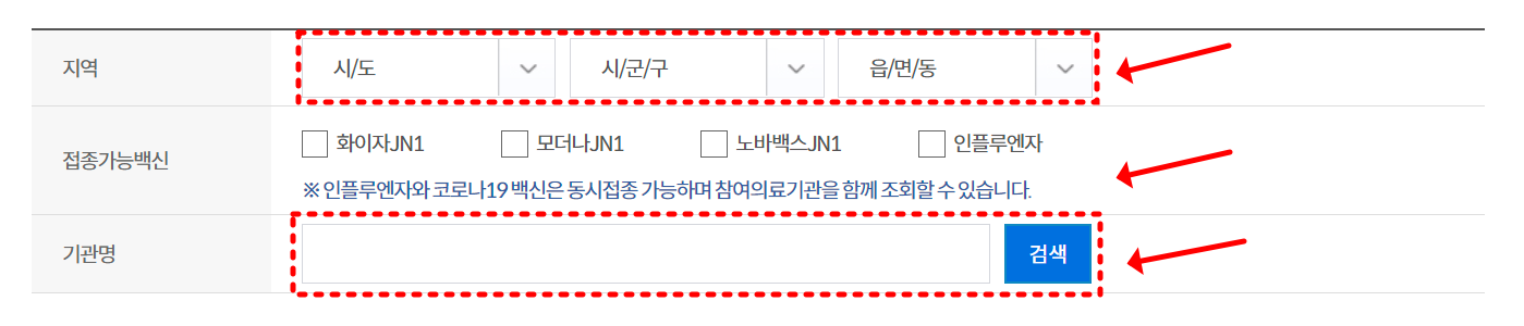 코로나19 백신과 인플루엔자 백신을 동시에 접종할 수 있는 의료기관 역시 별도로 조회할 수 있으니, 동시 접종을 원하는 분들은 이를 참고하여 방문하시길 권장드립니다.