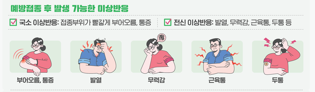 만약 백신 접종 후 고열, 심한 두통, 발진 등 심각한 증상이 나타날 경우 즉시 의료진과 상의하시기 바랍니다.