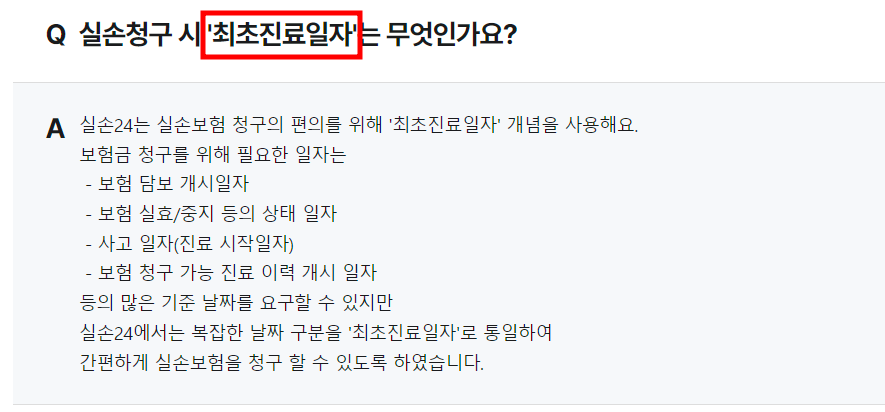 ▶사고유형 및 최초 진료일자 입력: 청구 사고유형을 선택하고 최초 진료일자를 입력합니다.