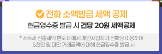 ▶예외 사항: 소득세 산출 세액 한도 내에서 개인사업자가 전화 소액 발급 혜택을 받을 수 있습니다.