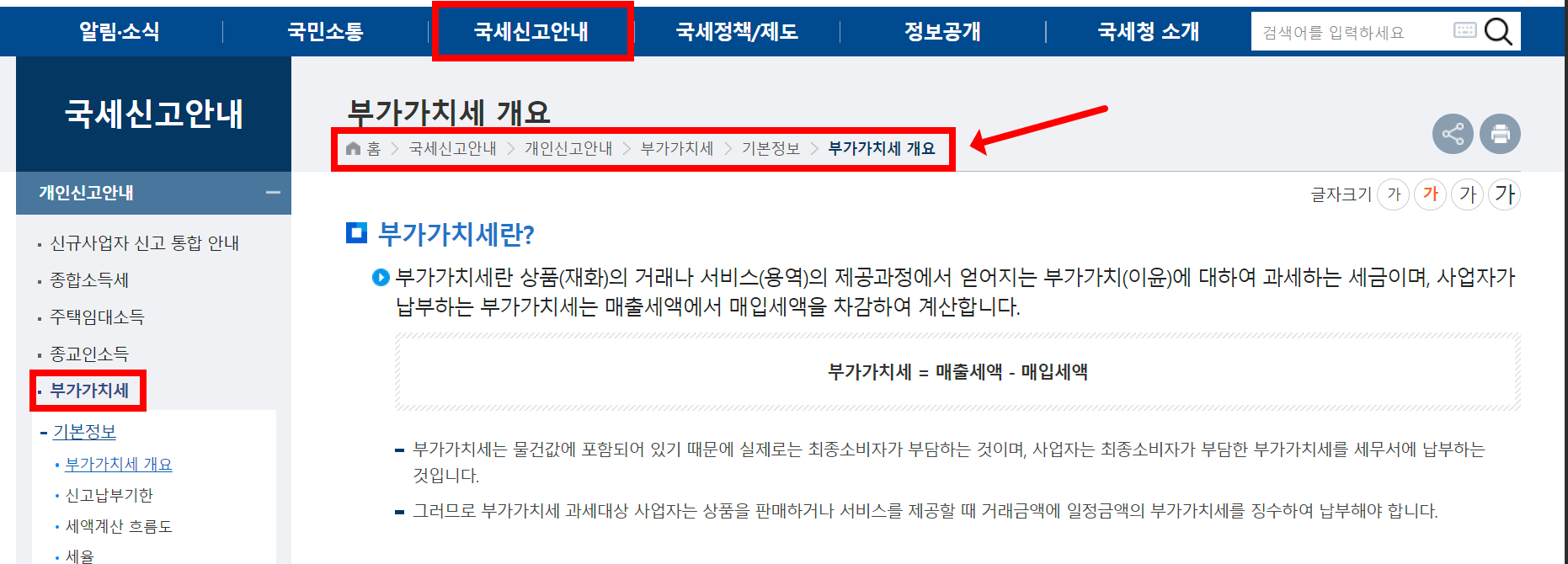 국세청 홈페이지에 접속하면 부가가치세에 대한 더 자세한 내용을 확인할 수 있습니다.