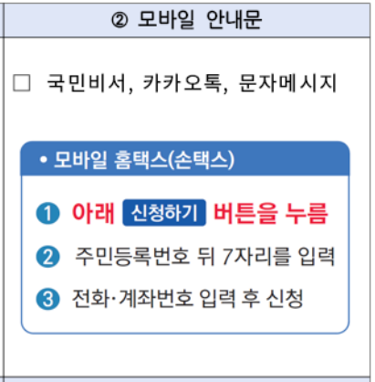 국세청에서 발송한 안내문에 적힌 개별 인증번호를 통해 전화로 신청 가능합니다.
