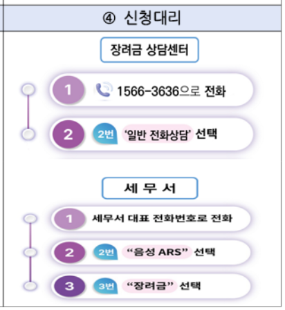 근로·자녀장려금 상담센터(☎ 1566-3636)에 전화하면 신청 안내를 받을 수 있습니다.