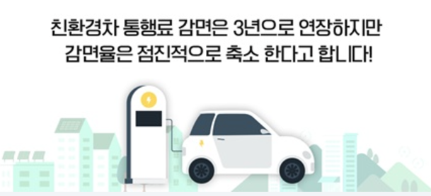 정부는 친환경차 보급 활성화를 위해 기존의 통행료 감면 기간을 2027년까지 3년 더 연장하기로 결정했습니다.