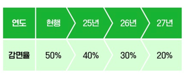 다만, 감면율은 점진적으로 축소될 예정입니다. 기존 50%였던 감면율은 2025년 40%, 2026년 30%, 2027년 20%로 조정됩니다.