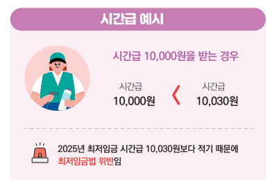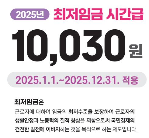 2025년 최저임금은 시간당 1만 30원으로 결정되었습니다.