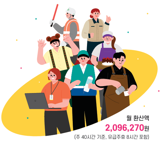 이는 월급으로 환산하면 209만 6270원 (1주 소정근로 40시간 근무, 월 209시간 기준)에 해당합니다.